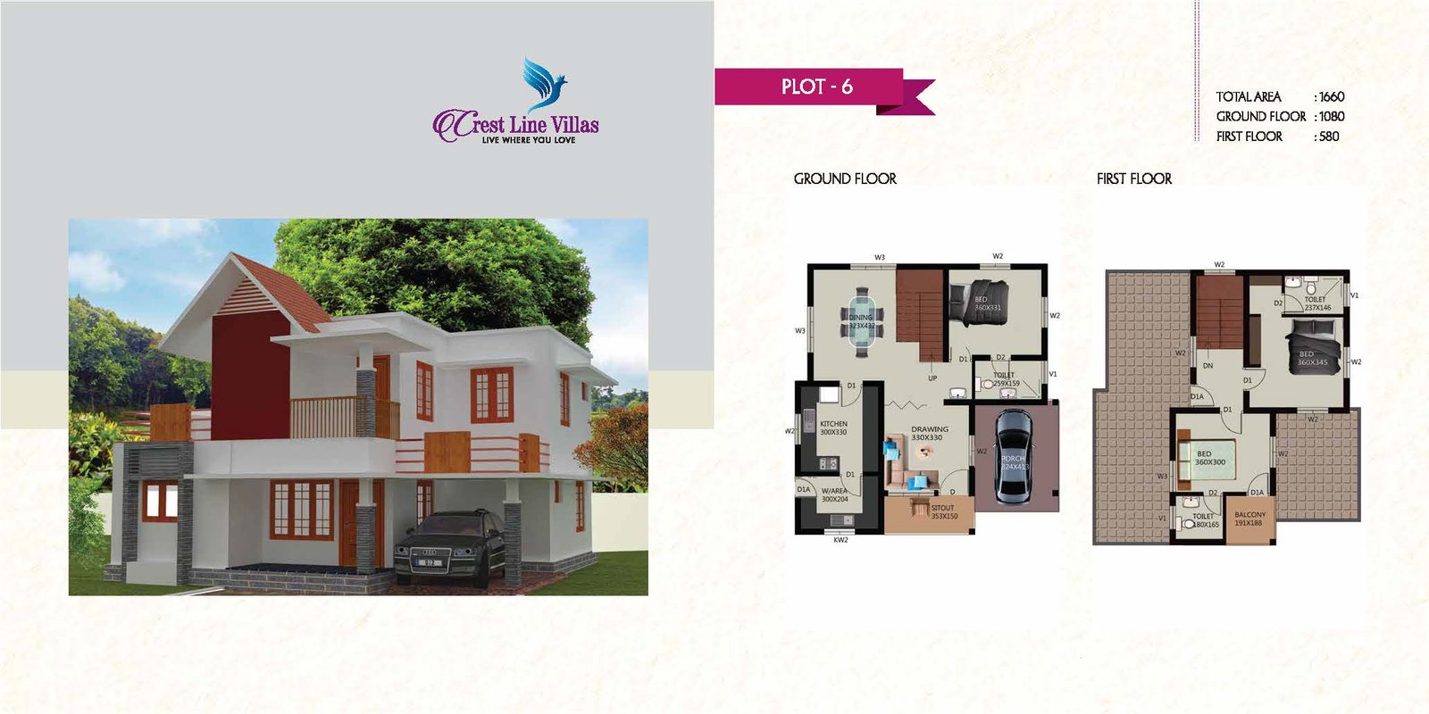 - Car Porch will be with exterior Porch tile