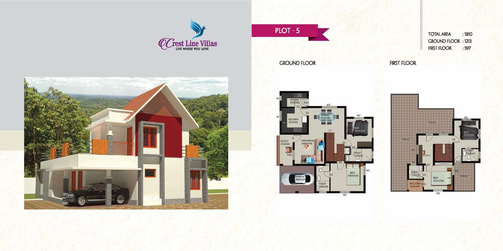 - Car Porch will be with exterior Porch tile